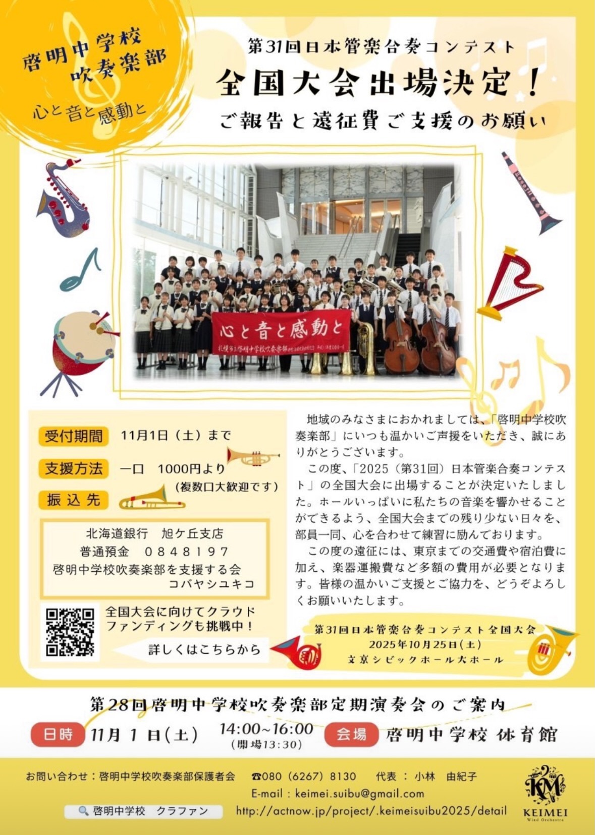 売上の一部は、ふたば動物病院の近くの「啓明中学校吹奏楽部」の全国大会出場の遠征費に募金されます。遠征費のクラウドファンディングや、募金箱もあります。ご支援ご協力の程、どうぞよろしくお願いいたします。