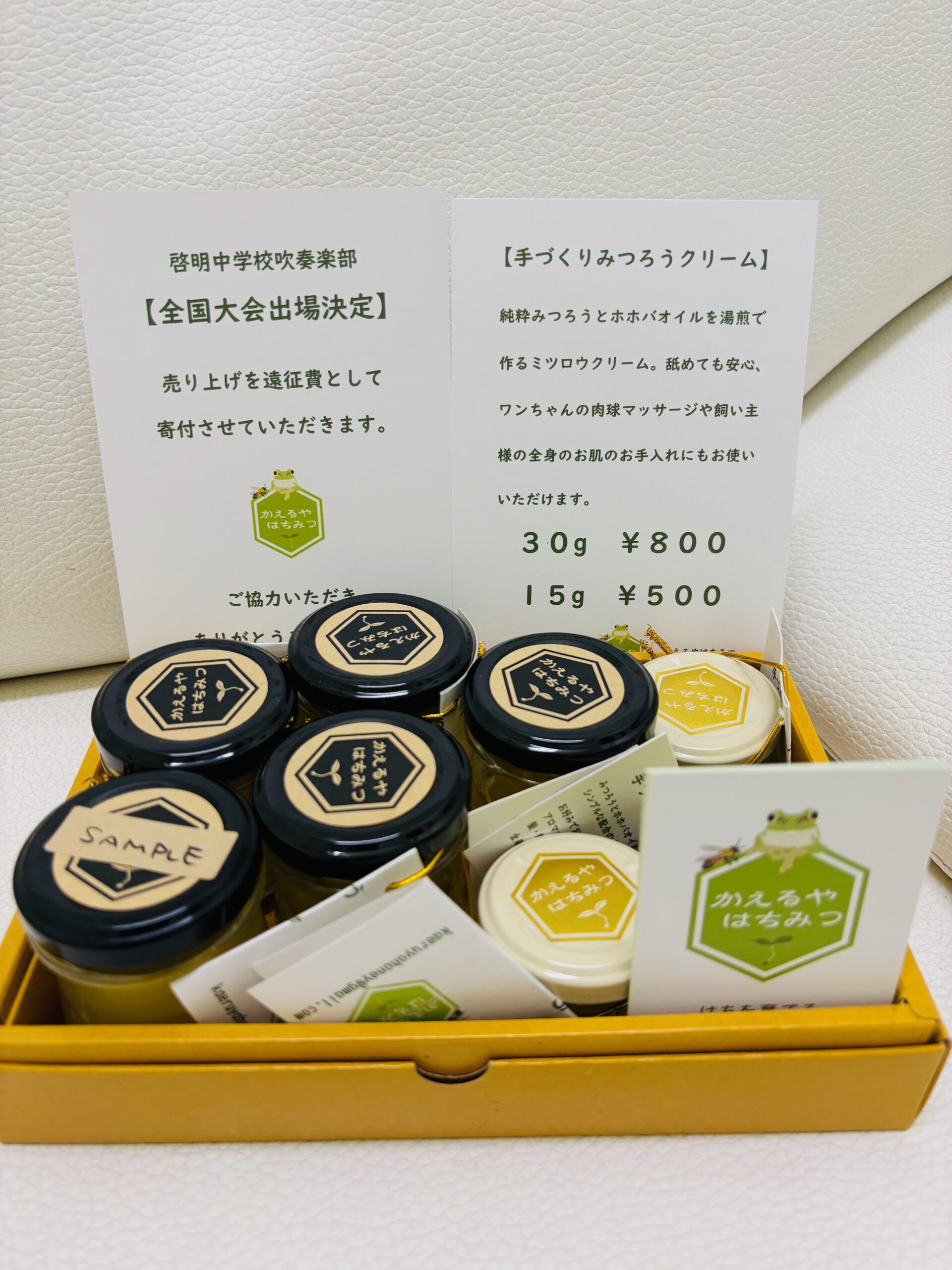 以前も好評いただいた「かえるやはちみつ」さんの『手づくりみつろうクリーム』のチャリティ販売を病院の受付にていたしております。ワンちゃんネコちゃんの肉球や、ヒトの肌でもマッサージやお手入れにも使えます。