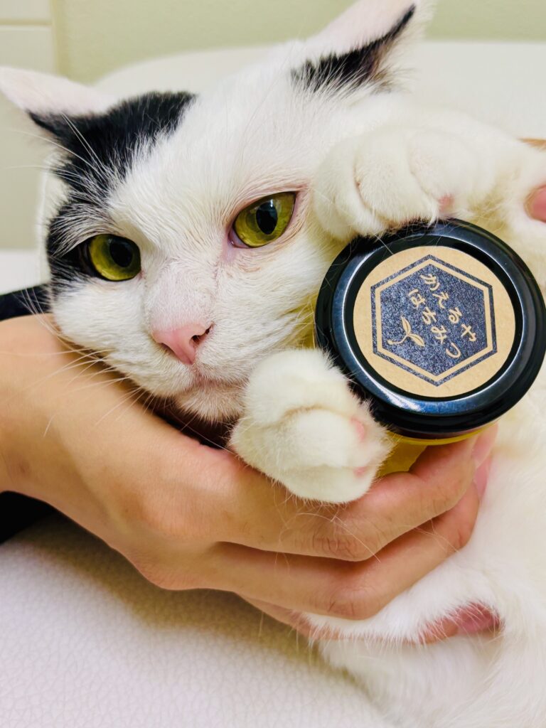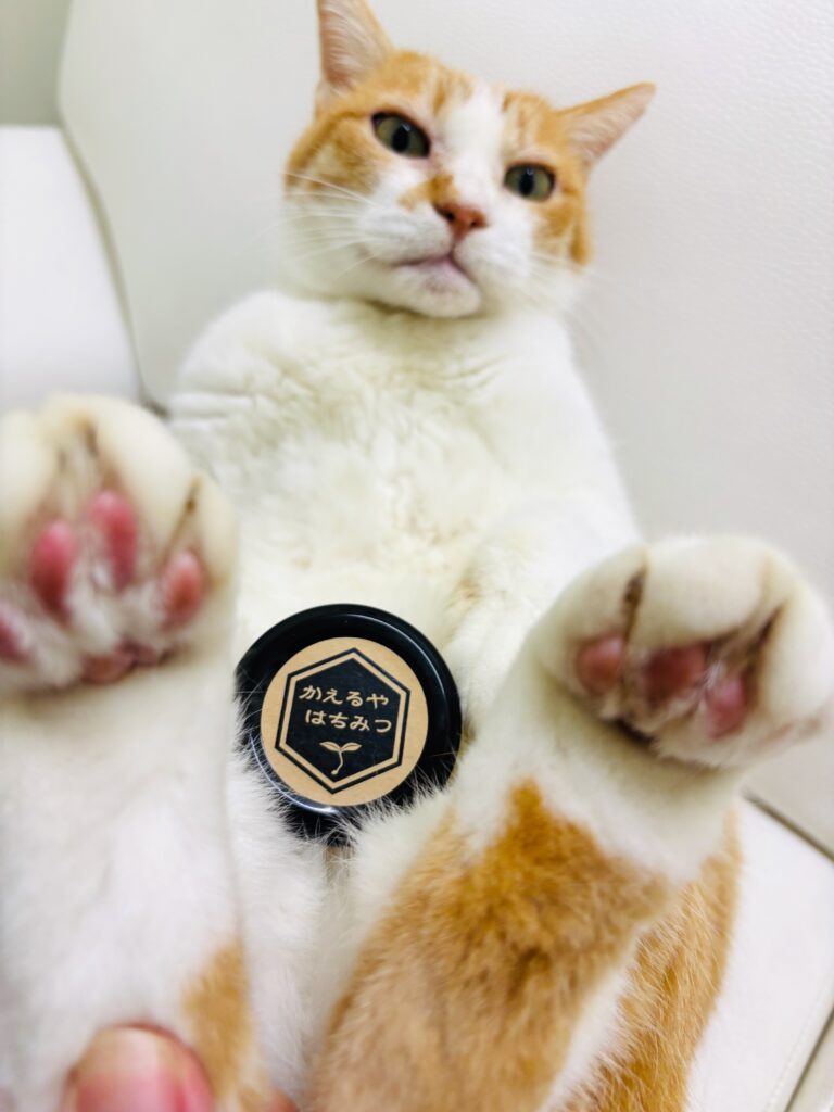 病院のネコたちも、みつろうクリームで肉球ツヤツヤです。